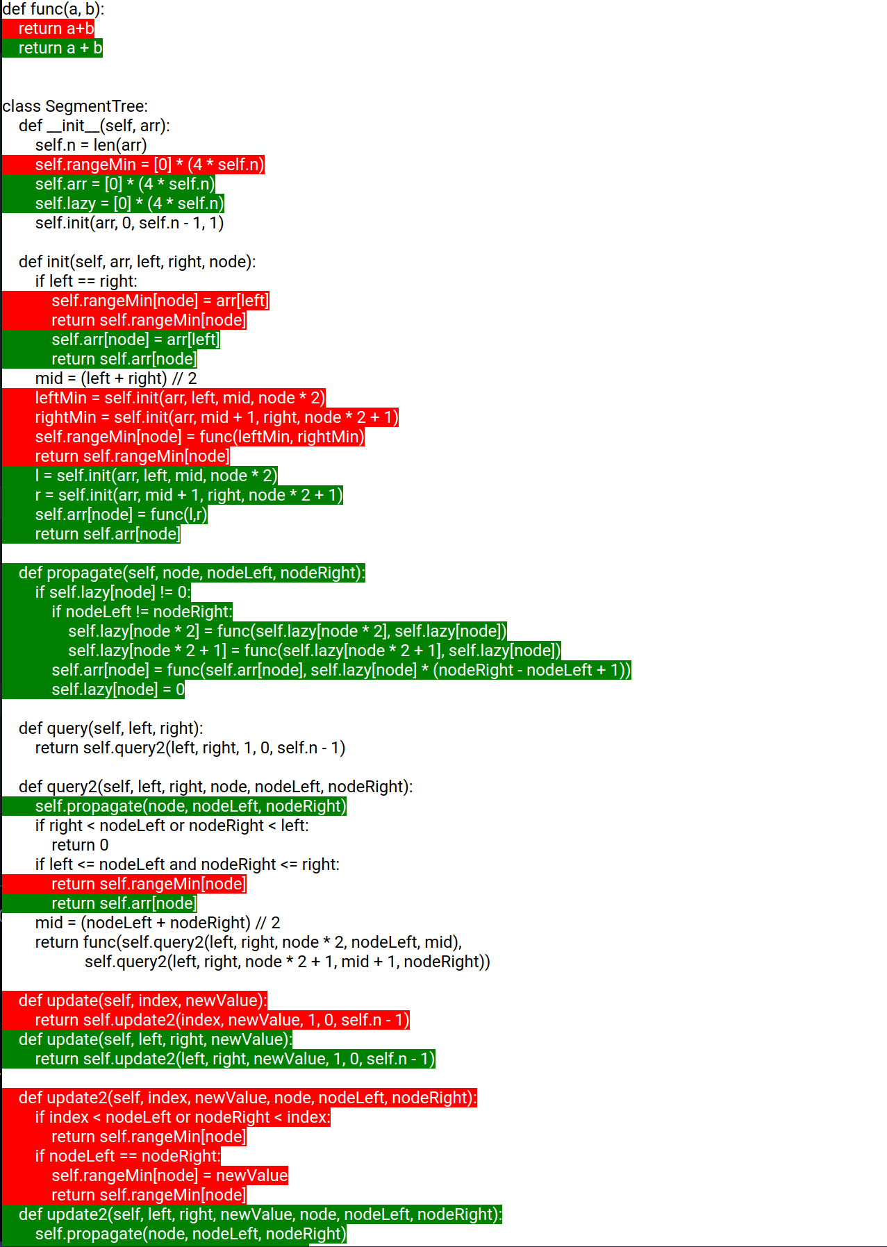 변경 전: 세그먼트 트리, 변경 후: 레이지 세그먼트 트리 코드이다. 뭔가 난잡하게 되어있다.